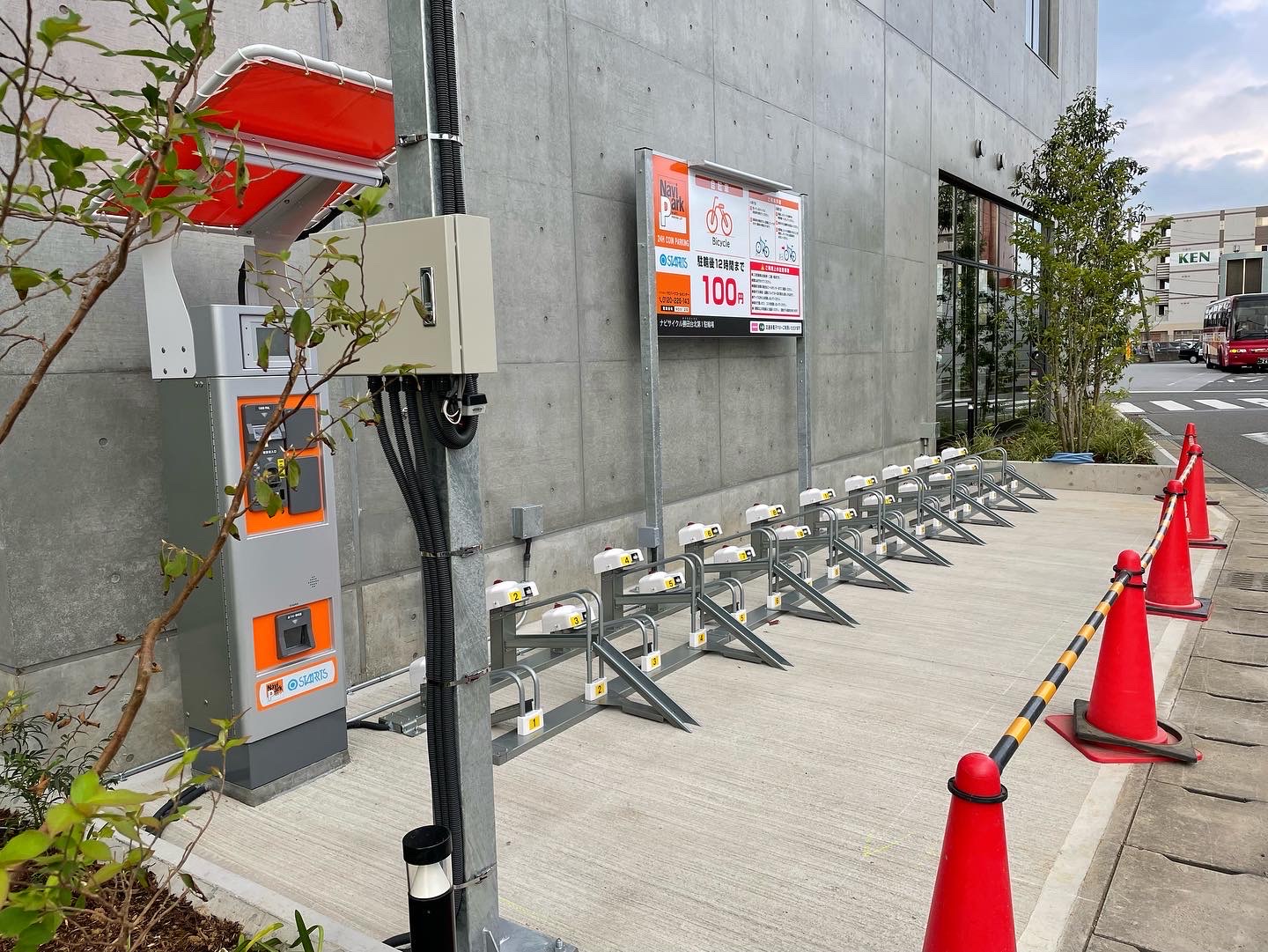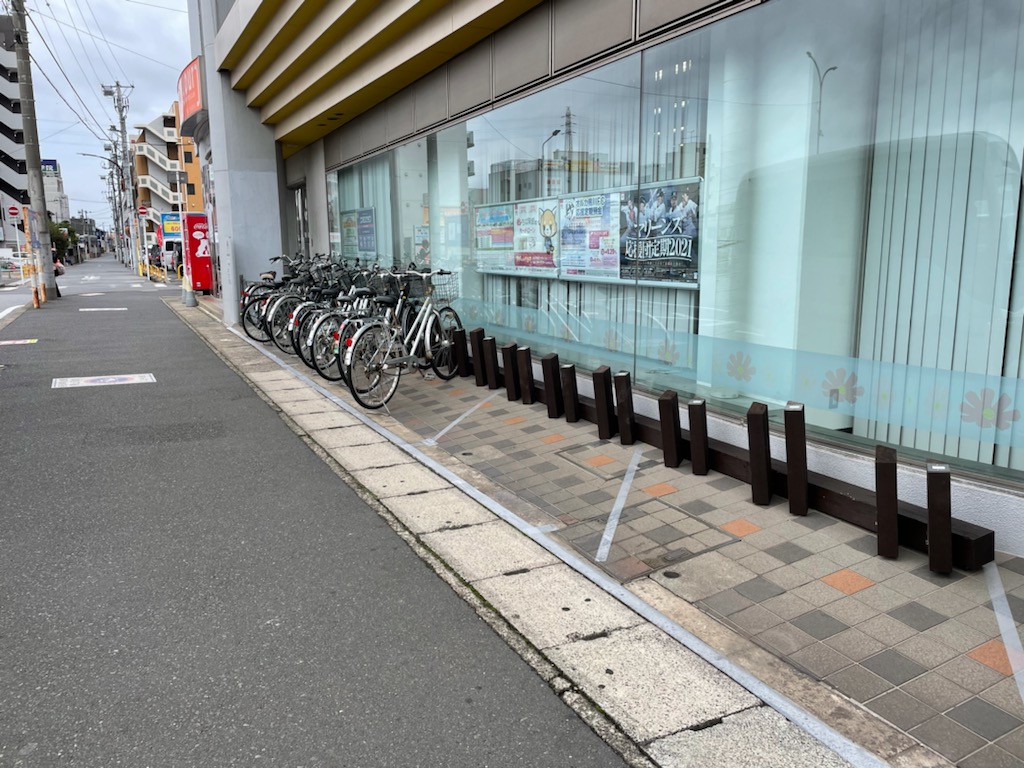 2021/6 国産材を使用し、テナント利用者専用の木製駐輪ラック設置 施工:(有)三角製材所