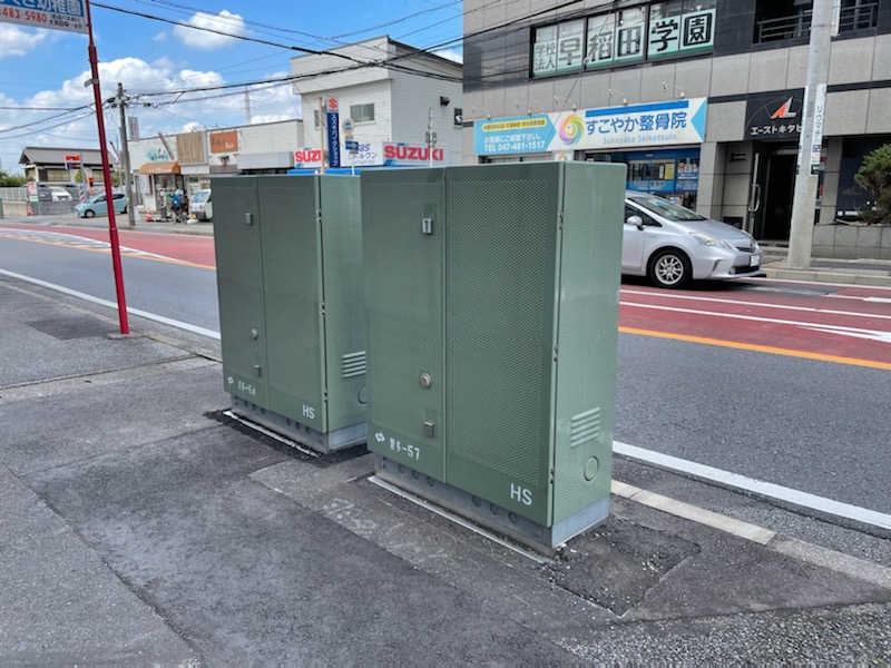 2020/7 成田街道 勝田台駅北口周辺 無電柱化工事開始。電線共同溝、変圧器が設置されました。
